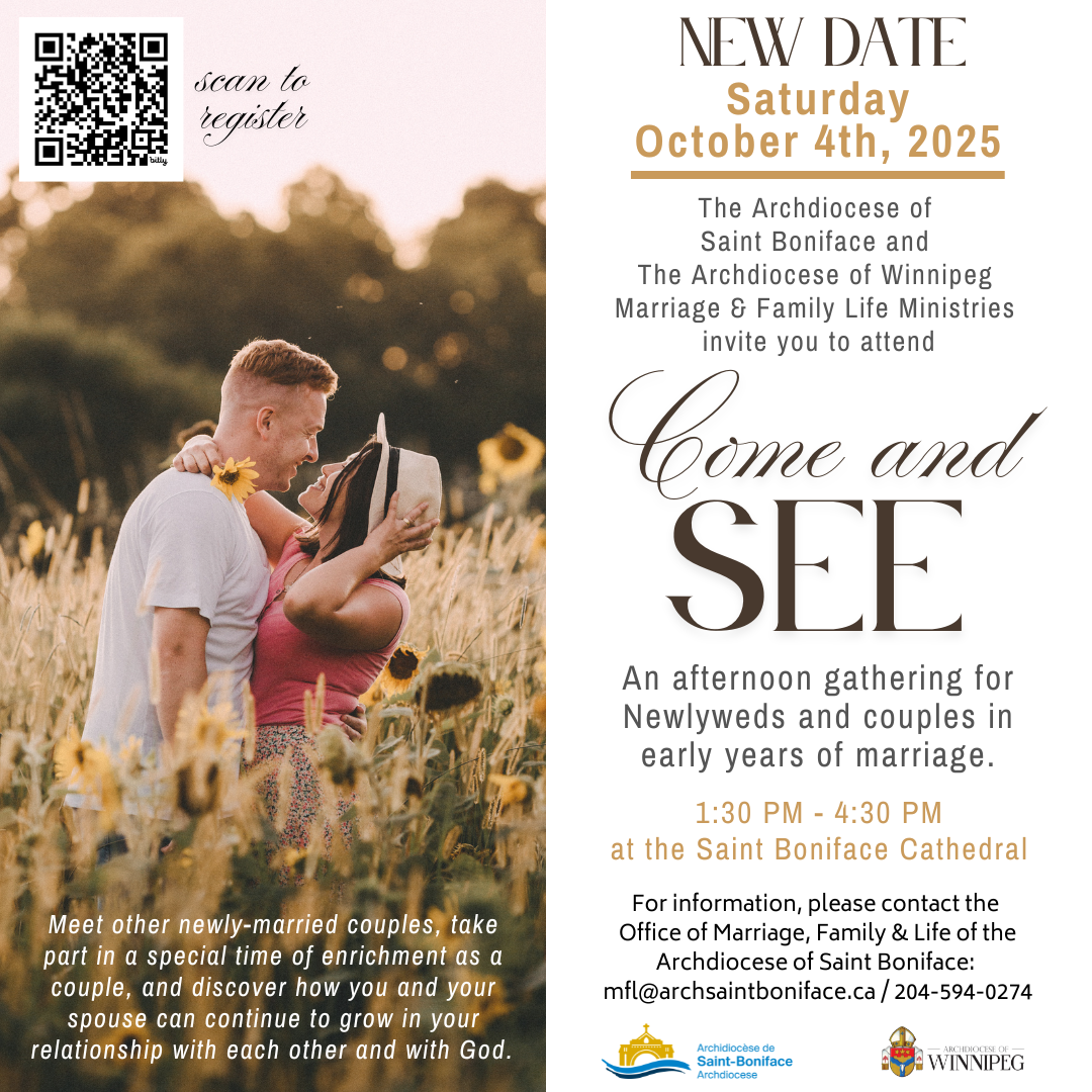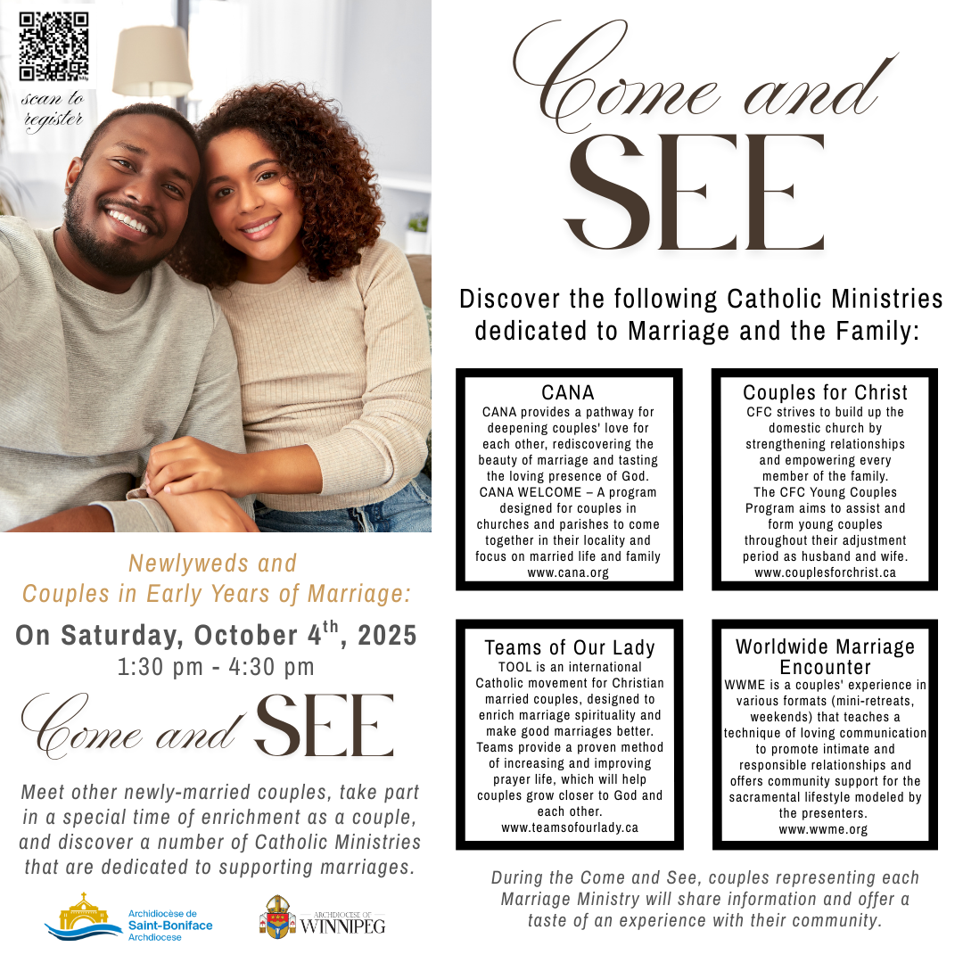 Worldwide Marriage Encounter WWME is a couples' experience in various formats (mini-retreats, weekends) that teaches a technique of loving communication to promote intimate and responsible relationships and offers community support for the sacramental lifestyle modeled by the presenters. A WWME enrichment experience is a time for couples to listen to presentations and share privately with each other; a time to focus on themselves. www.wwme.org Local Contact: Miriam & Stan Amaladas: 204-599-8398 |