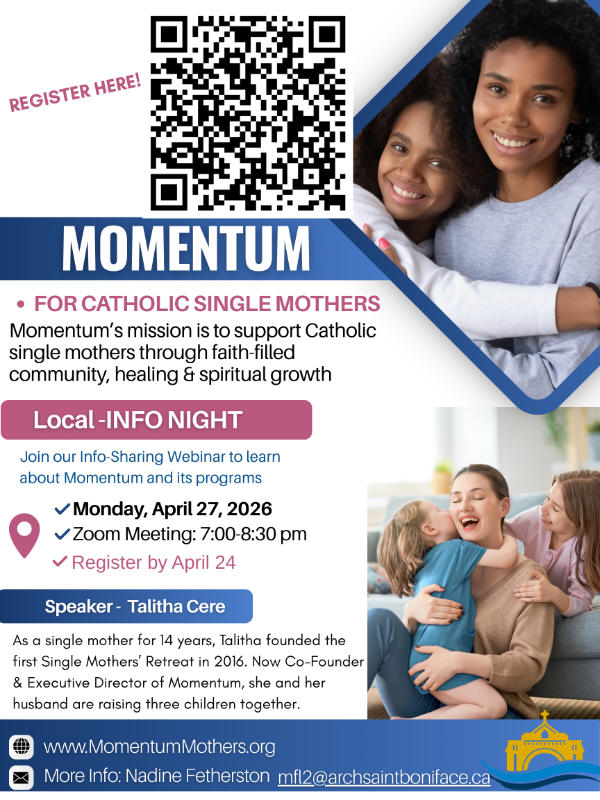 Visit this page often for news and updates on upcoming events & activities for couples and families of the Archdiocese of Saint Boniface and elsewhere in Manitoba.